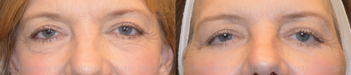 This 58 year old woman from South Shore, Kentucky came to The Columbus Institute of Plastic Surgery for a Lower Blepharoplasty (eyelid surgery). As you can see, she had quite a bit of puffiness and “bags” under the eyes. Feeling like thismade her look tired, she wanted that area to be more smooth and refreshed looking. Dr. Bivik Shah performed the surgery creating an incision under the lower lashes that once healed, is always hard to notice. Within about a year to a year and a half, the scar will look its absolute best. The after photo here was taken 4 months after surgery.
