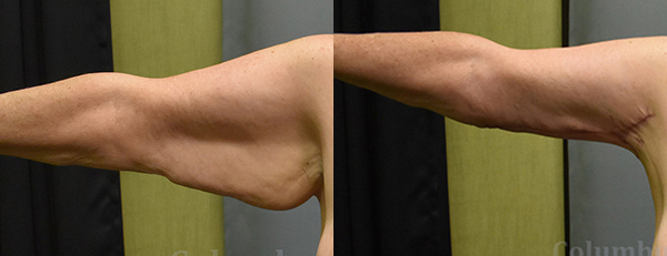 This is a 60-year-old woman from Marion, Ohio who came to The Columbus Institute of Plastic Surgery with an excessive amount of fat and skin on her upper arms (“bat wings”). She met with Top Plastic Surgeon, Dr. Bivik Shah and together they decided that she would greatly benefit from a brachioplasty (arm lift). She is pictured here before and 3 months after surgery.