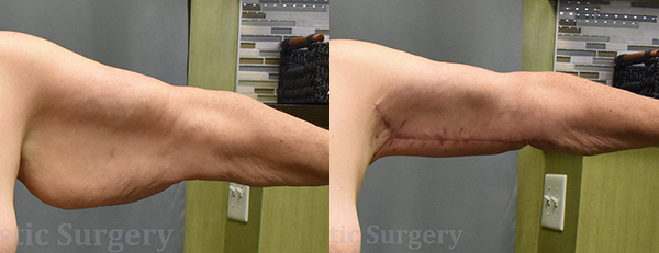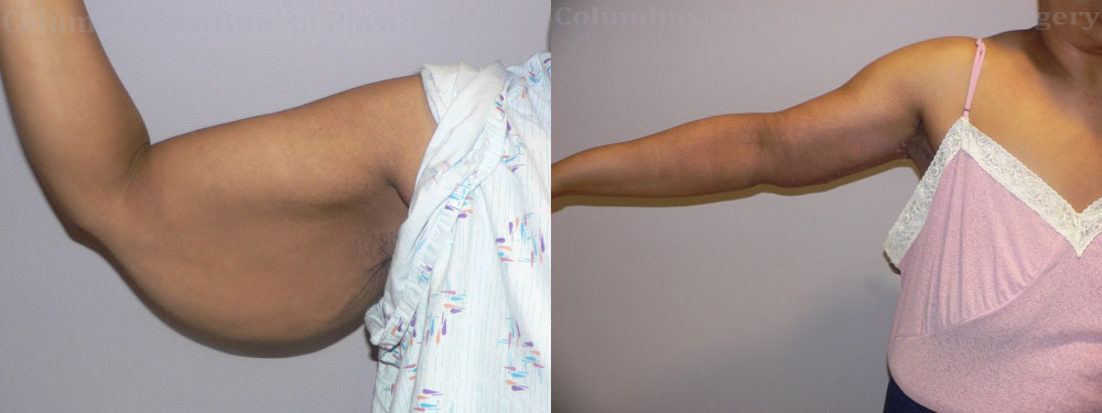 This is a 44 year old woman from Columbus, Ohio who came to the plastic surgeon, Dr. Bivik Shah about excess skin on her arms. She and Dr. Shah decided on an armlift (brachioplasty). The excess skin was removed and the scar remains along her inner arm. The after photos were taken 1 month after her surgery and will continue to heal for the next couple of years.