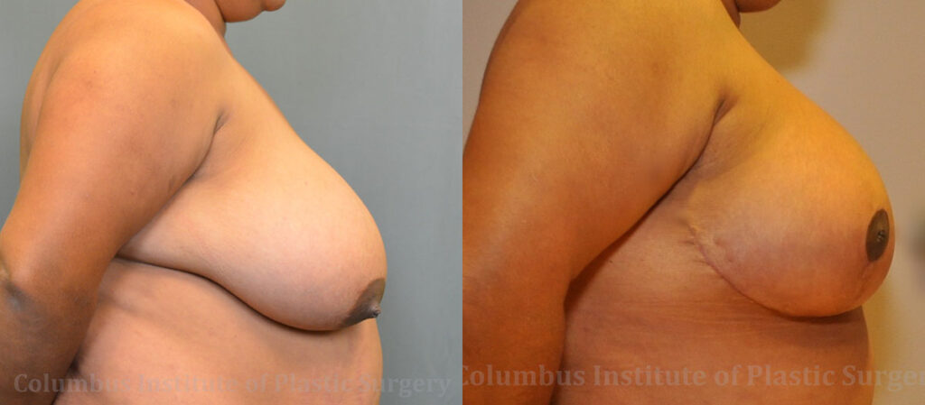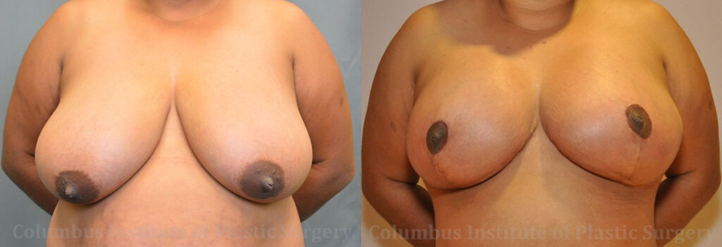 This 38-year-old woman from Columbus, Ohio had been experiencing much discomfort and issues due to her large breasts. She came to Columbus Institute of Plastic Surgery to inquire on a breast reduction. Dr. Bivik Shah removed 1.5 lbs of breast tissue from her right breast, and 1.09 lbs from the left. The after photos of this woman was taken 2 months after the breast reduction and she is now much more comfortable with the size of her breasts.